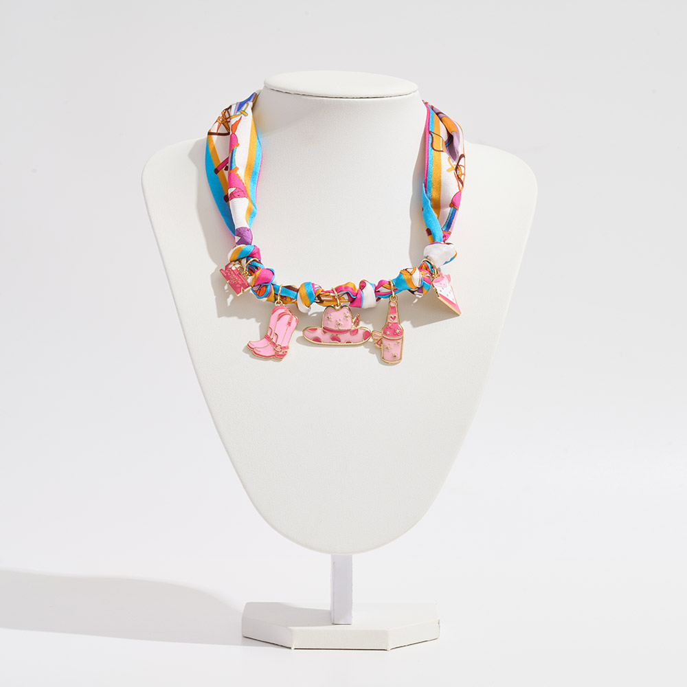 Enamel Western Theme Charm Station Fabric Scarf Necklace / Adjustable Bracelet / Bag Charm