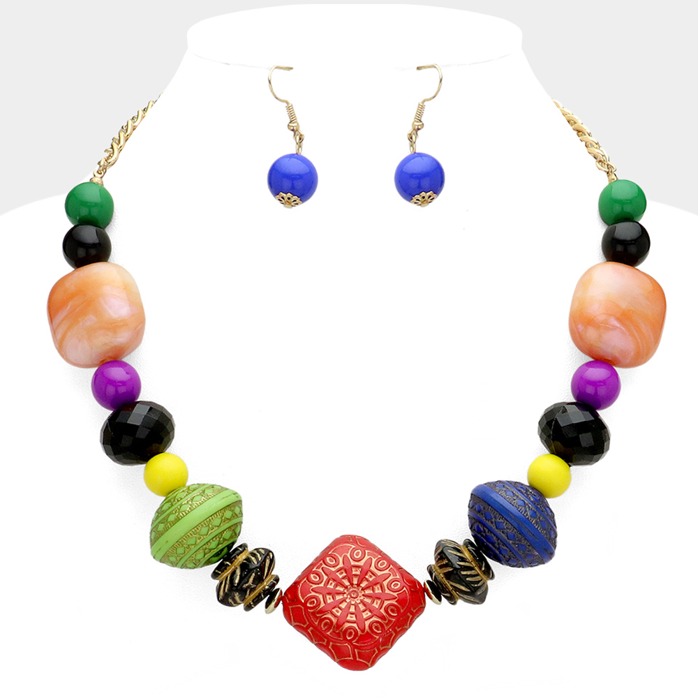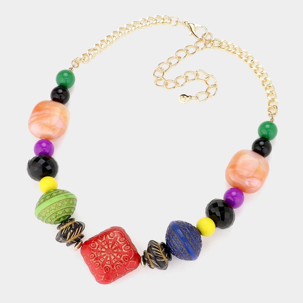 Wooden Ball Beaded Statement Necklace