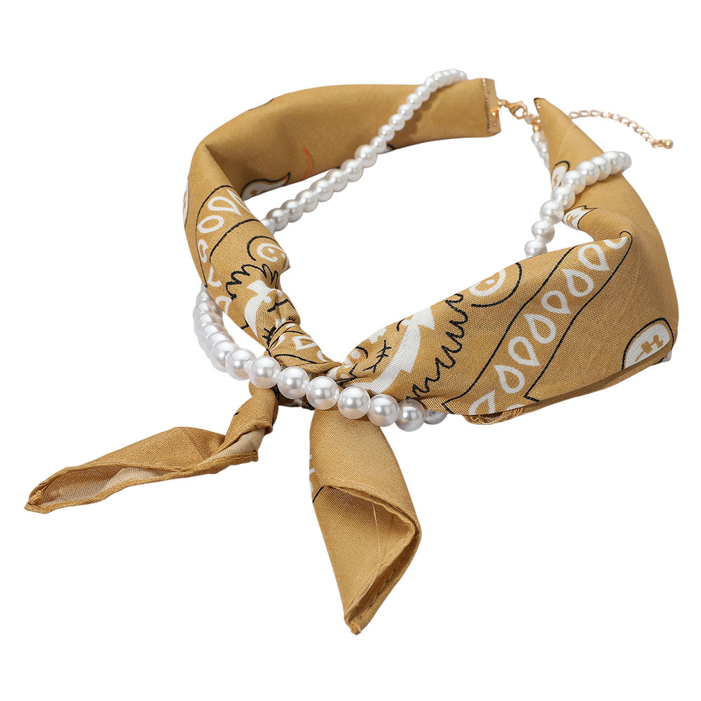 Fabric Bandana Scarf Pearl Layered Necklace Fabric Bandana Scarf Pearl Layered Necklace