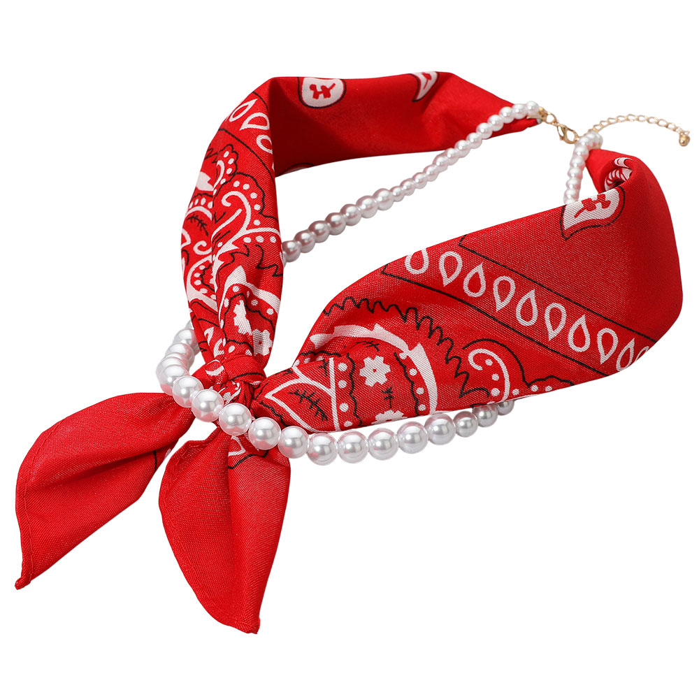 Fabric Bandana Scarf Pearl Layered Necklace Fabric Bandana Scarf Pearl Layered Necklace
