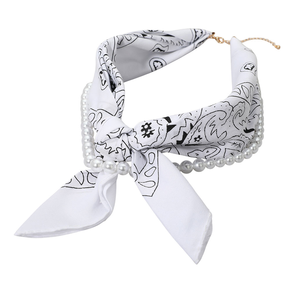 Fabric Bandana Scarf Pearl Layered Necklace Fabric Bandana Scarf Pearl Layered Necklace