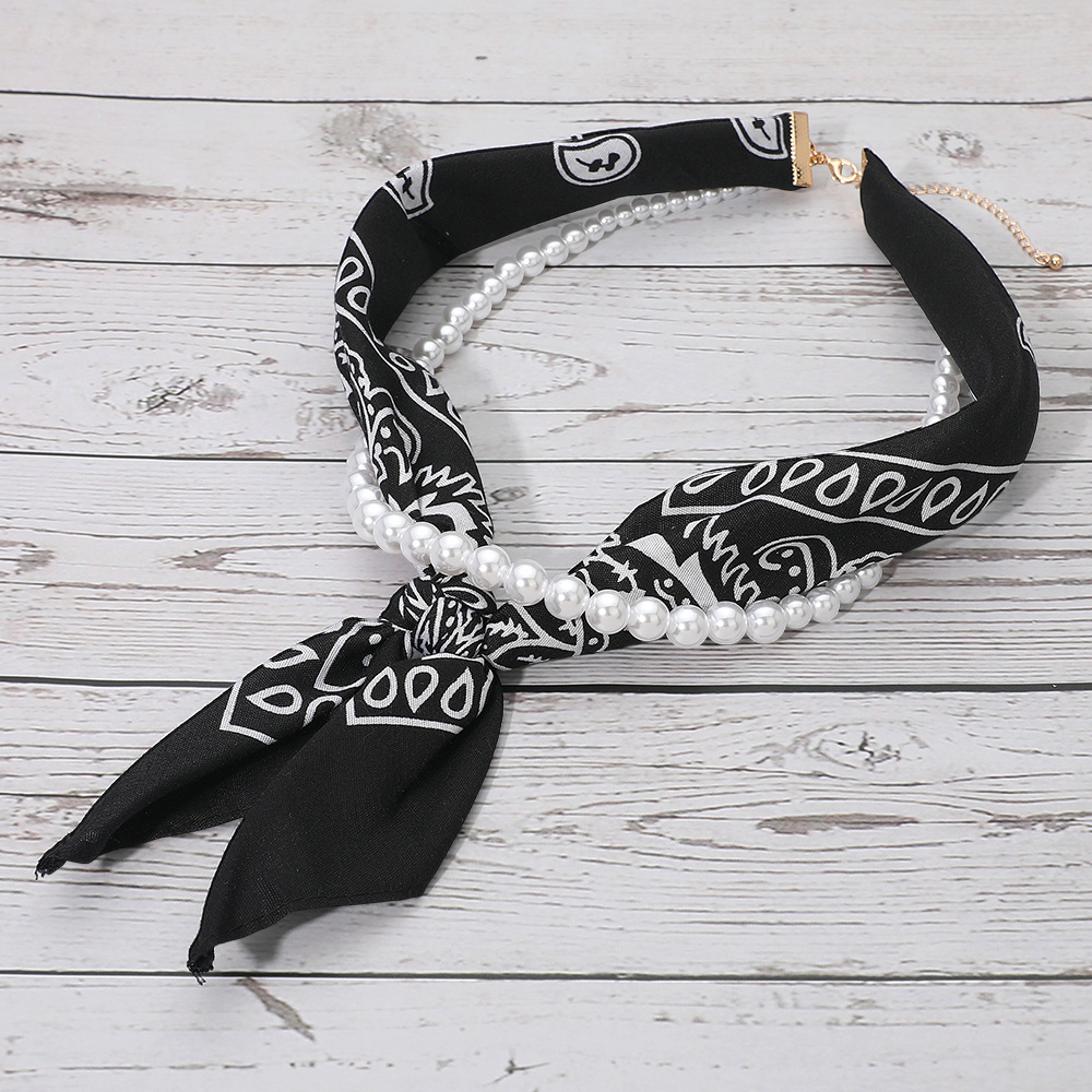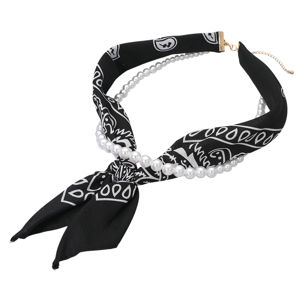 Details • Necklace Size : 20" + 3" L • Decor Size : 4" L • Print may vary • Turn heads with this pearl and scarf statement necklace, blending classic elegance with bold style. The chic combination of lustrous pearls and a patterned scarf creates a versatile accessory that elevates any outfit, perfect for casual charm or standout sophistication. • Lead and Nickel Compliant