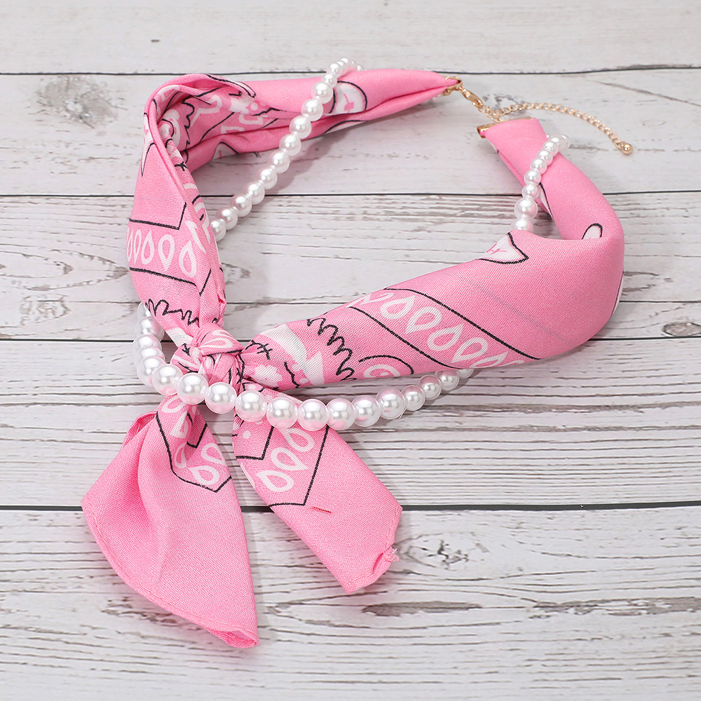Fabric Bandana Scarf Pearl Layered Necklace Fabric Bandana Scarf Pearl Layered Necklace