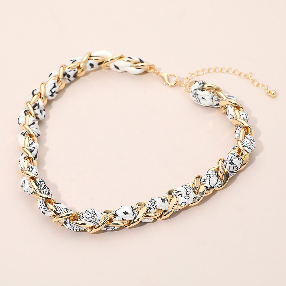 • This stylish chain link necklace features an interwoven fabric design for a chic and modern twist on a classic look. With its adjustable clasp, it offers both comfort and versatility, making it an ideal accessory to elevate casual outfits or complement elegant attire.