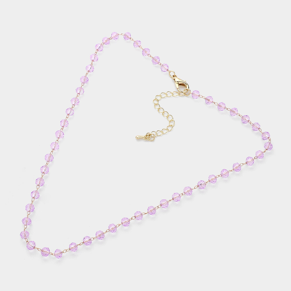 Stone Paved Cross Bow Crescent Pearl Charm Station Chain Necklace