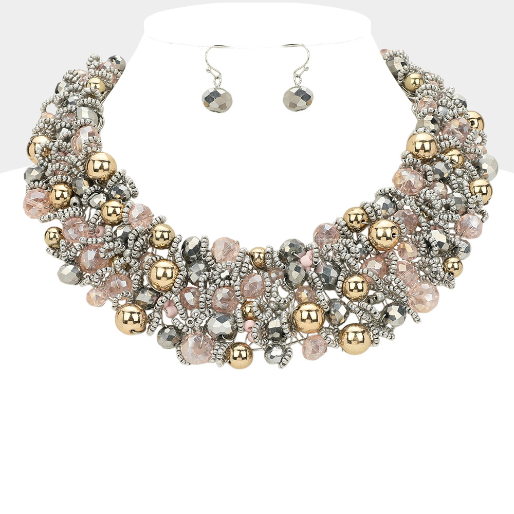 Round Marquise CZ Stone Cluster Flower Vine Necklace