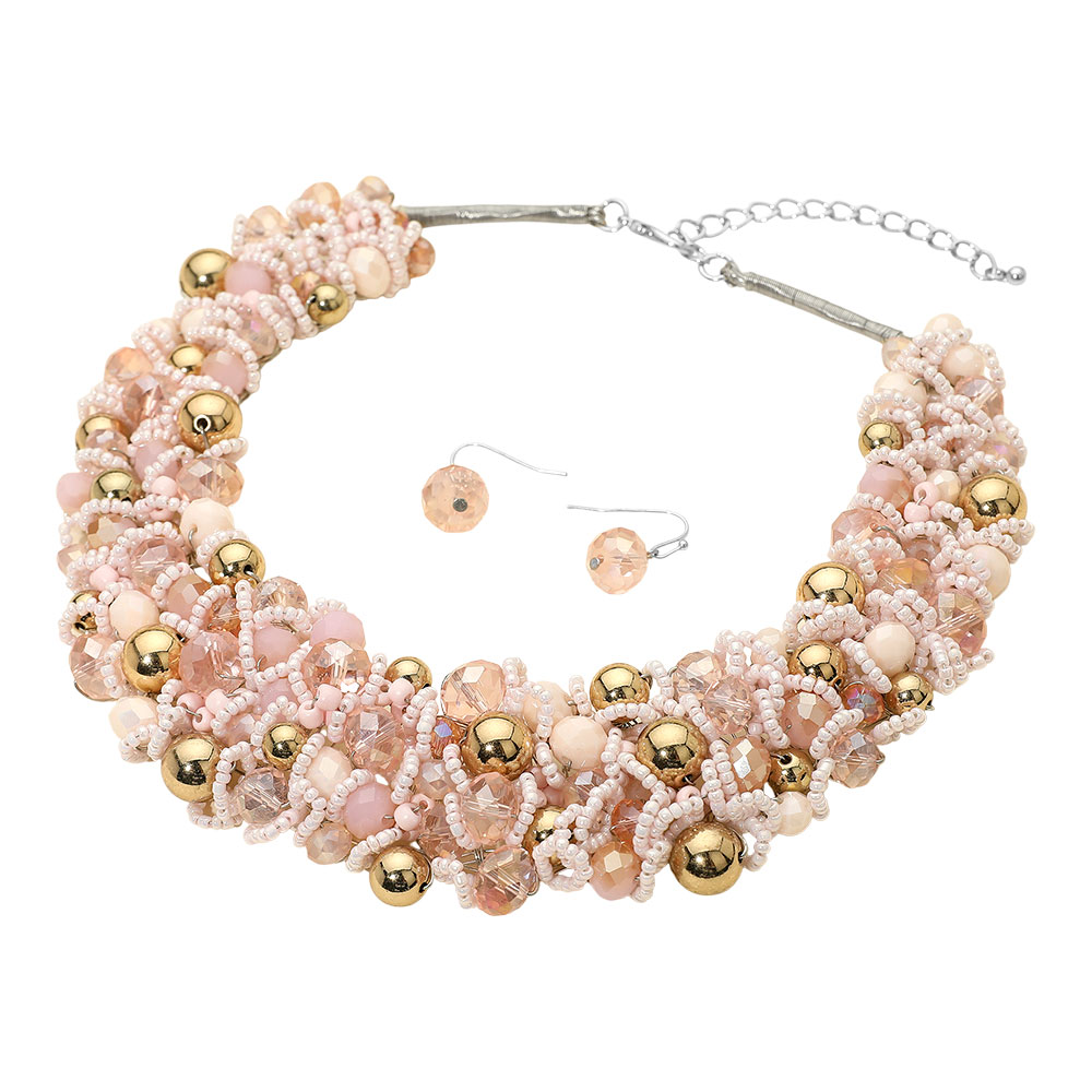 Faceted Beaded Collar Statement Necklace