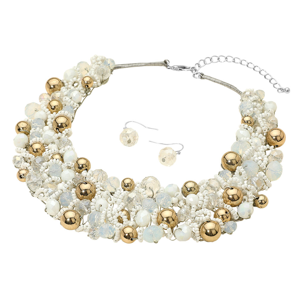 Faceted Beaded Collar Statement Necklace