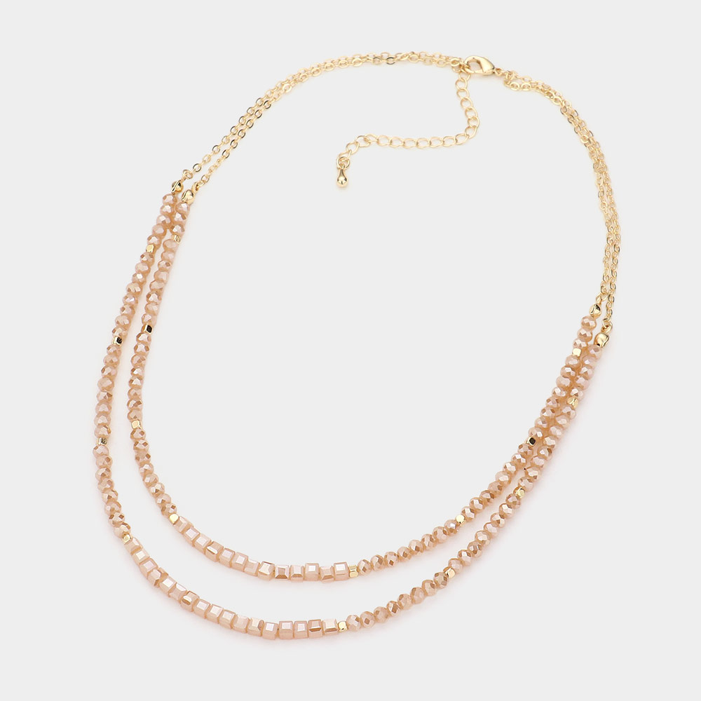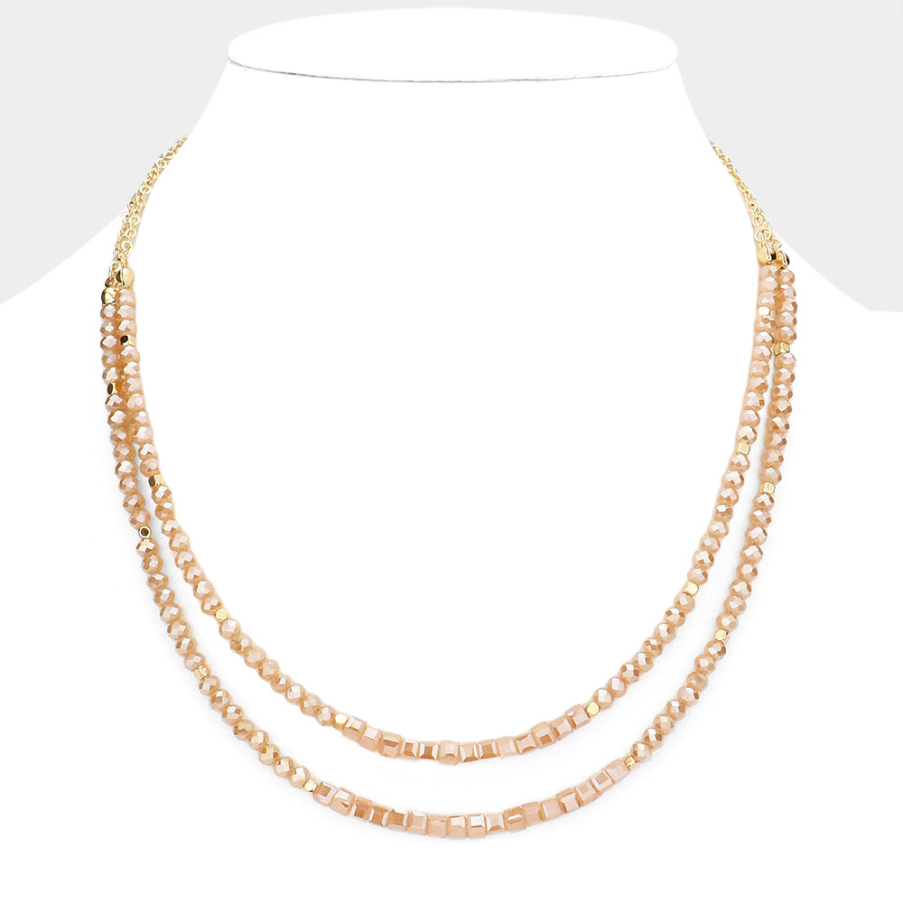 Polished Metal Accent Resin Pebble Beaded Stretch Bracelet
