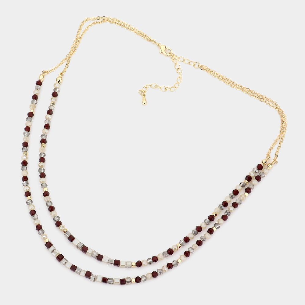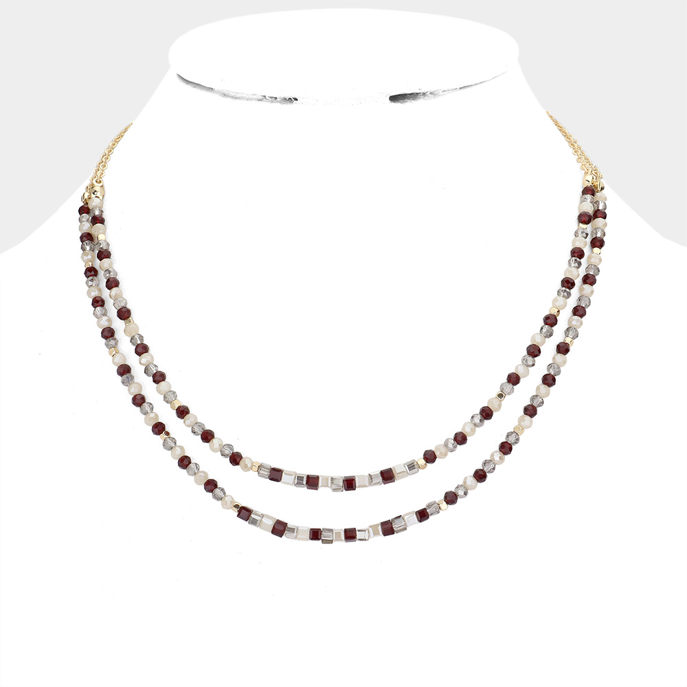 5PCS - Metal Cross Accent Resin Bamboo Bar Faceted Beaded Stretch Multi Layered Bracelets