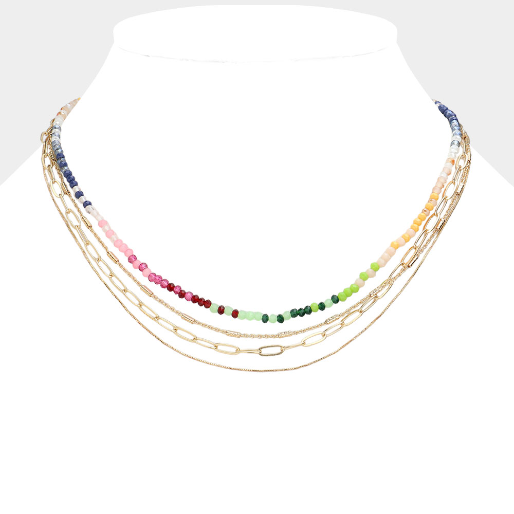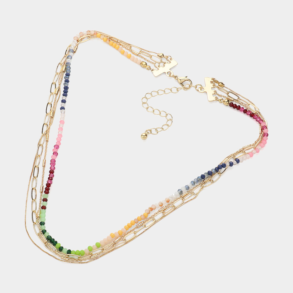 Faceted Beaded Metal Chain Layered Necklace