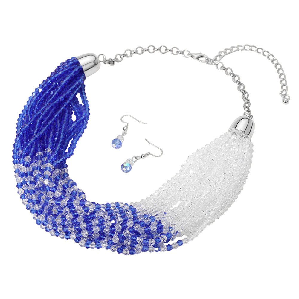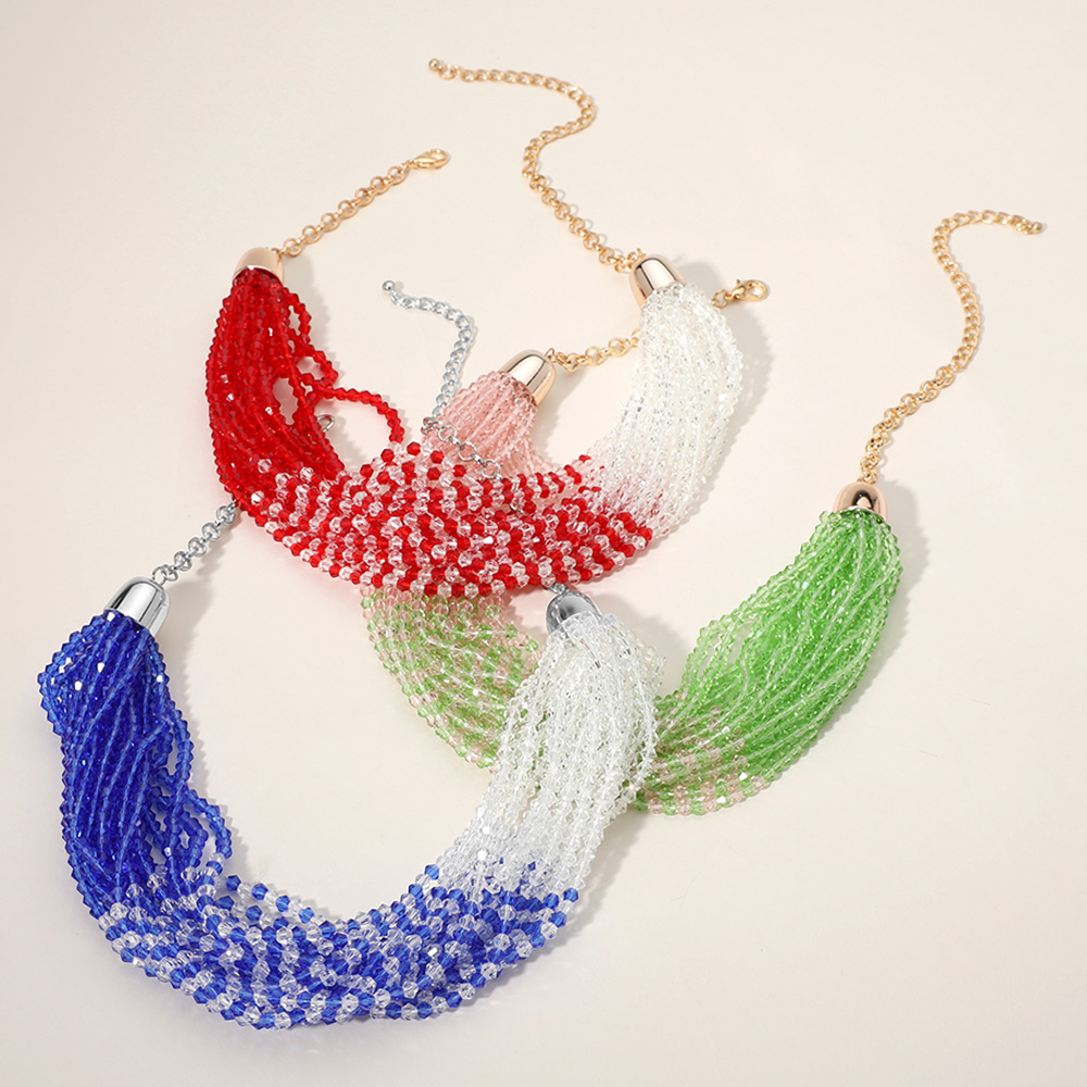 Faceted Beaded Multi Layered Strand Statement Necklace