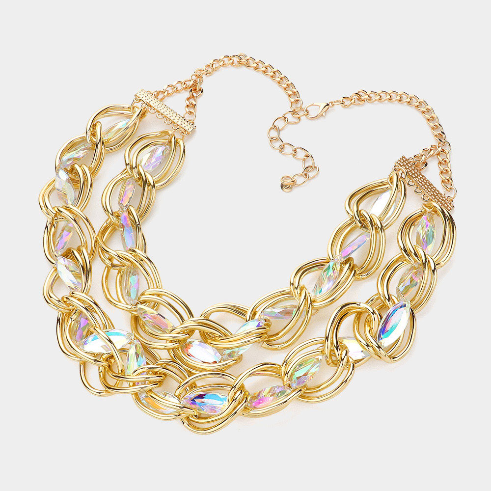 Faceted Marquise Stone Link Chunky Chain Layered Statement Necklace