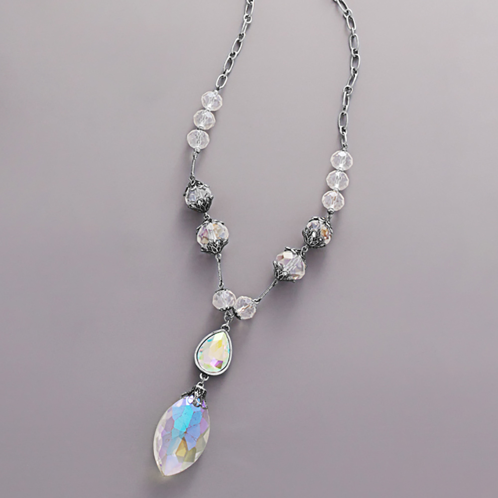 Faceted Marquise Stone Pendant Pointed Y Shaped Necklace
