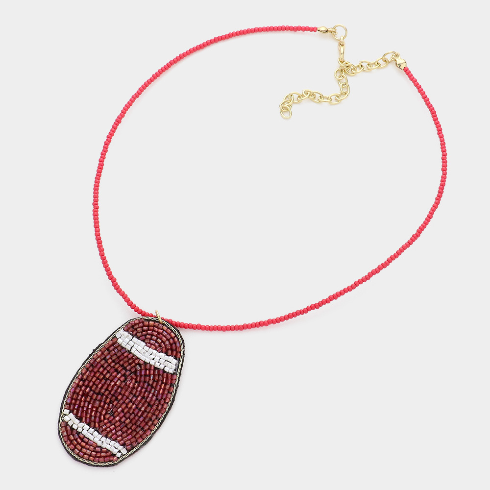 Felt Back Beaded Football Pendant Necklace