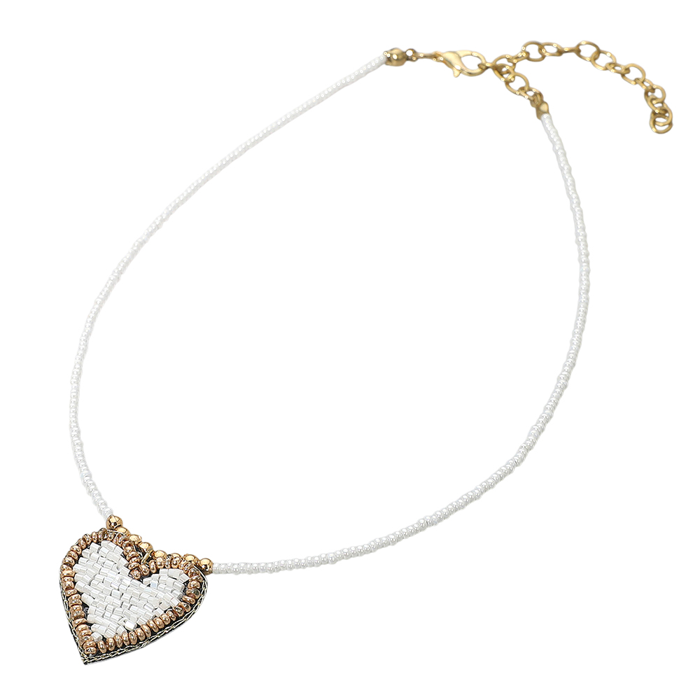 Details • Necklace Size : 14" + 3" L • Pendant Size : 1" X 1" • Charming necklace featuring a hand-beaded heart pendant on a delicate beaded chain. Perfect for adding a romantic touch to casual or layered looks. Lightweight, feminine, and versatile, this necklace brings a subtle boho elegance to your everyday accessory collection. • Lead and Nickel Compliant • Made In India
