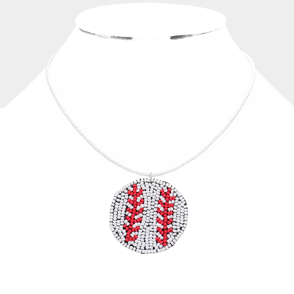 Felt Back Seed Beaded Baseball Pendant Necklace