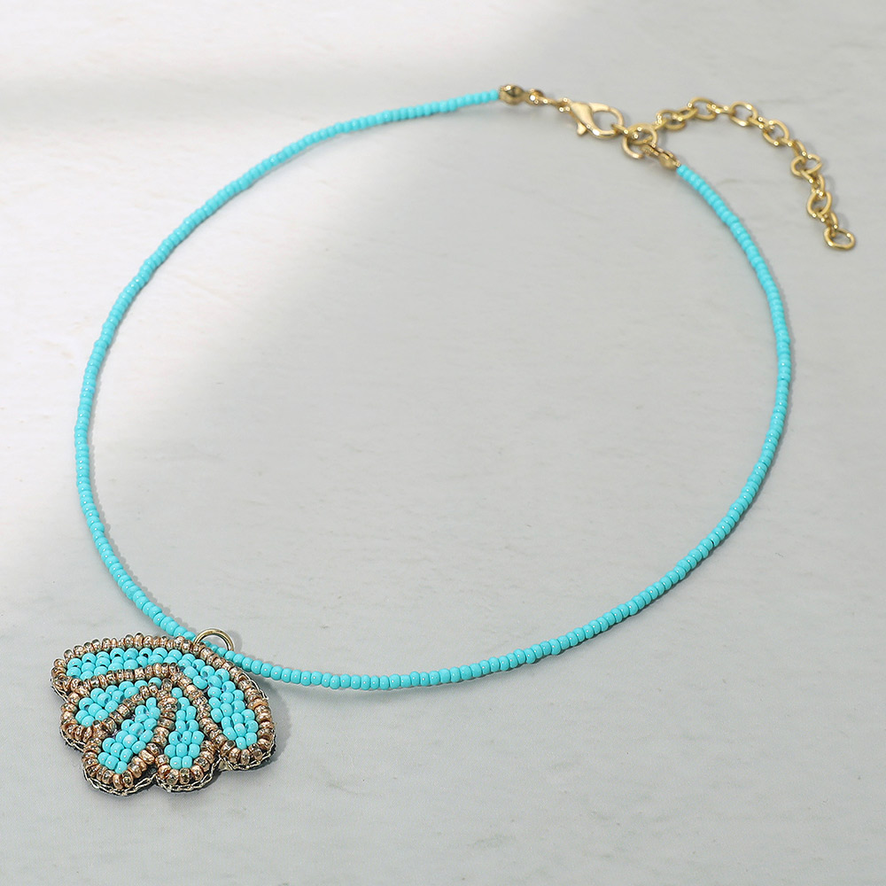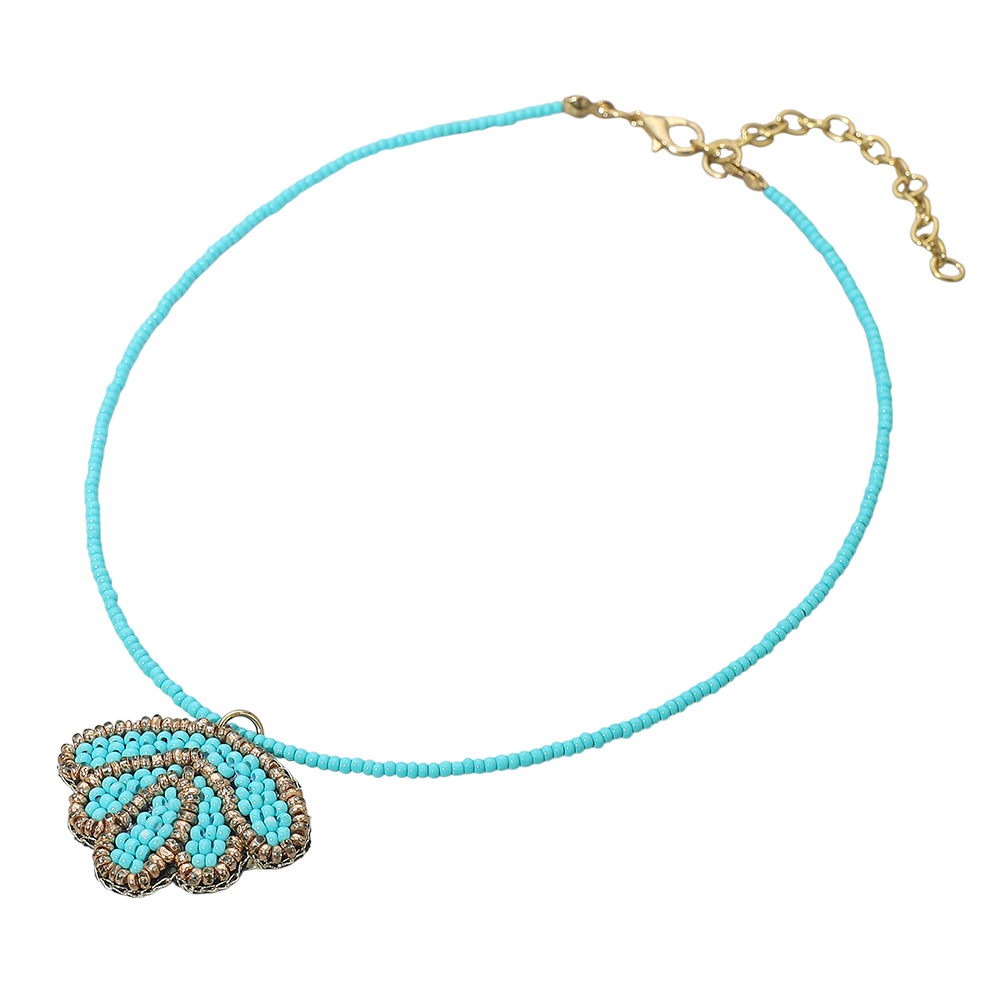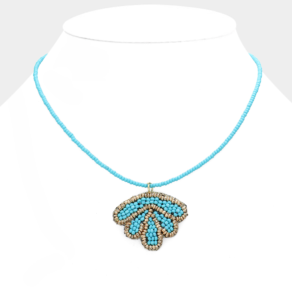 Felt Back Seed Beaded Shell Pendant Necklace