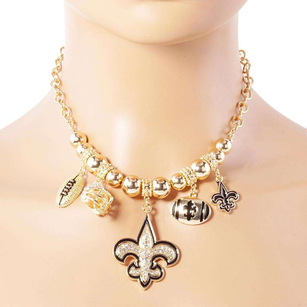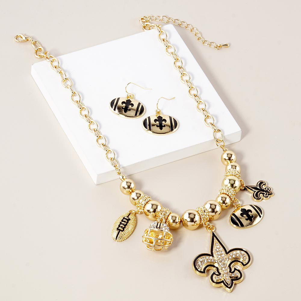 Fleur de Lis Football Theme Charms Metal Chain Necklace