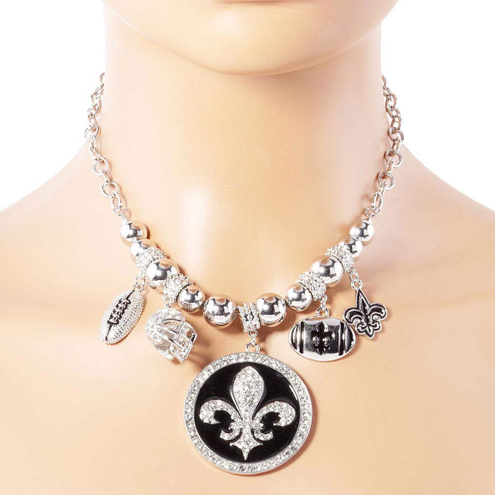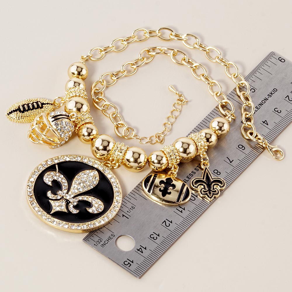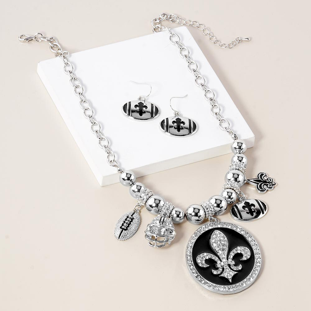 Fleur de Lis Football Theme Charms Metal Chain Necklace