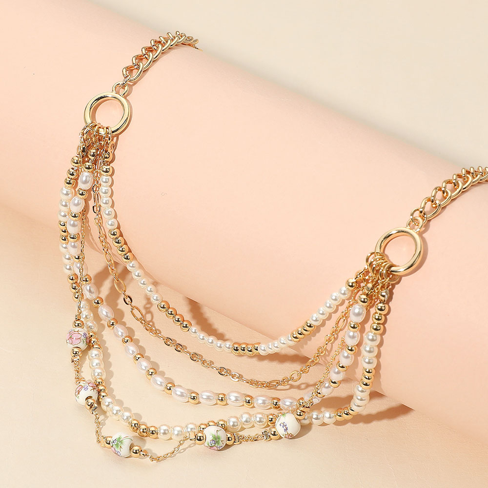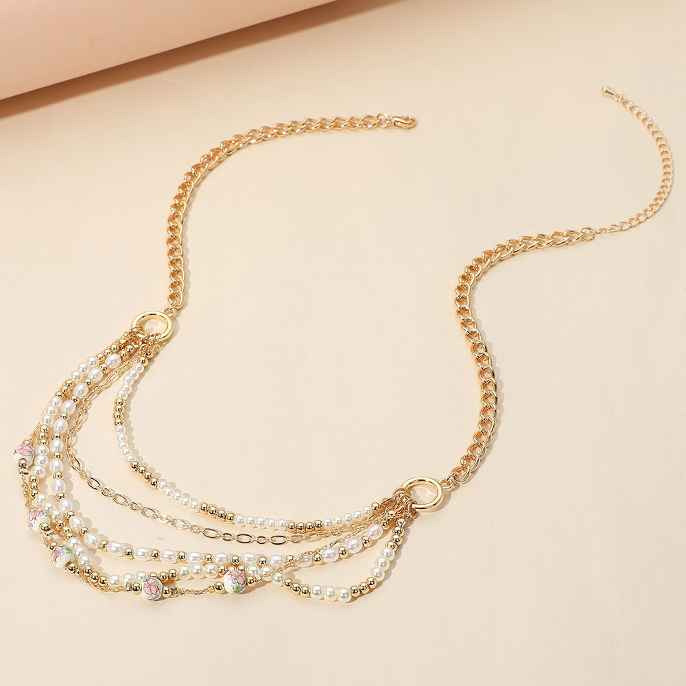Floral Ceramic Ball Pearl Beaded Multi Layered Necklace