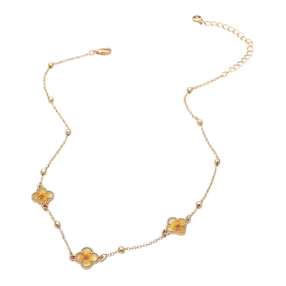 Floral Encased Quatrefoil Charm Station Necklace Floral Encased Quatrefoil Charm Station Necklace Floral Encased Quatrefoil Charm Station Necklace