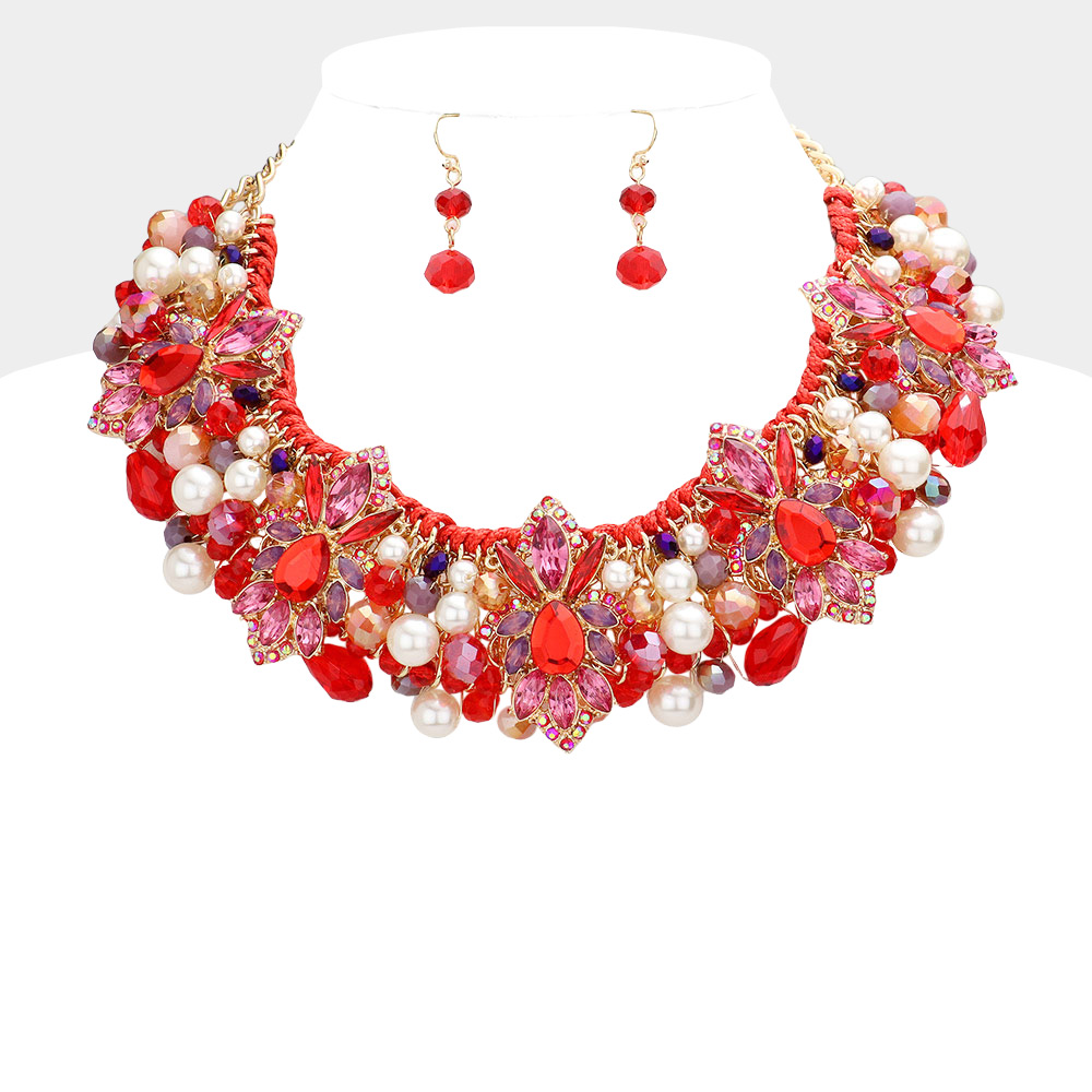 Chunky Acrylic Beaded Multi Layered Faux Leather Necklace