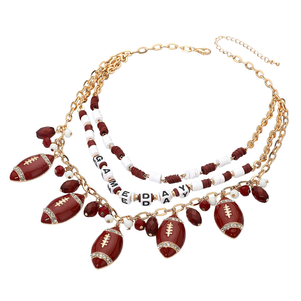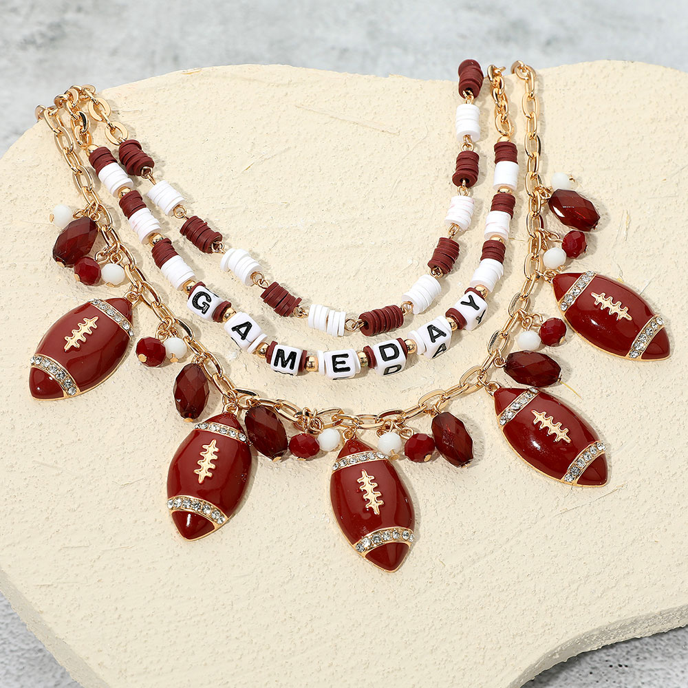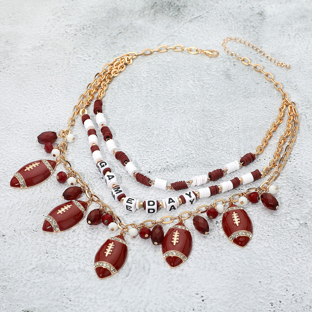 Football Charm Embellished GAMEDAY Heishi Beaded Layered Necklace