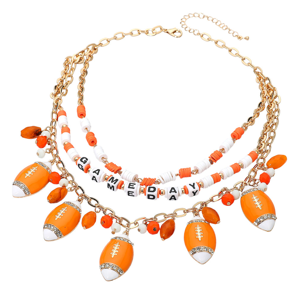 • Layered necklace featuring football charms, gameday letter beads, and playful accents. A spirited accessory to show team pride, add energy to gameday looks, and complete fan outfits with fun layered style.