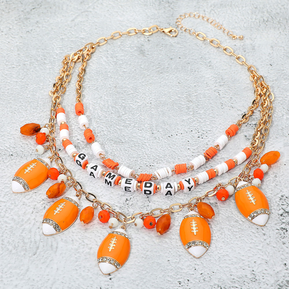Football Charm Embellished GAMEDAY Heishi Beaded Layered Necklace