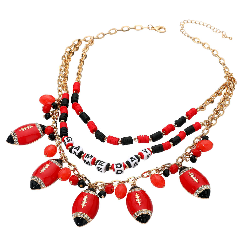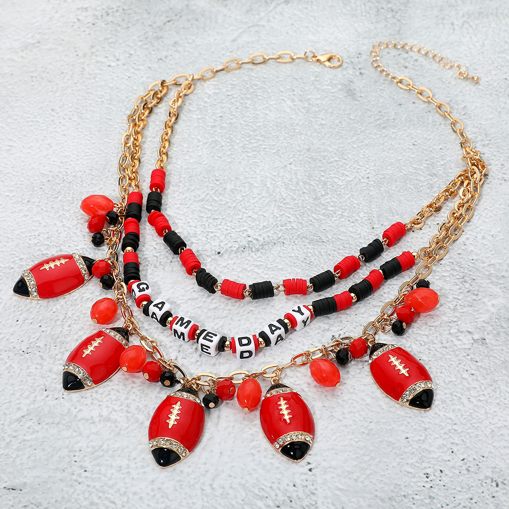 Football Charm Embellished GAMEDAY Heishi Beaded Layered Necklace