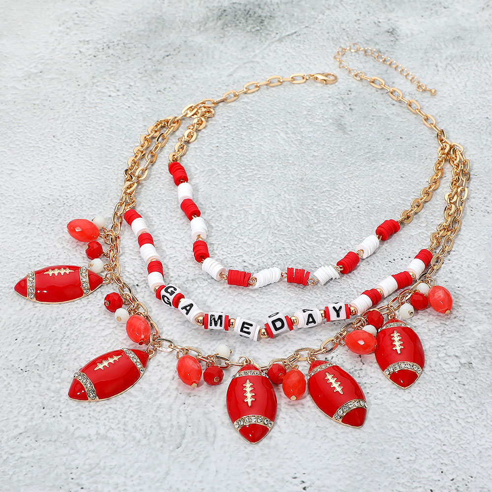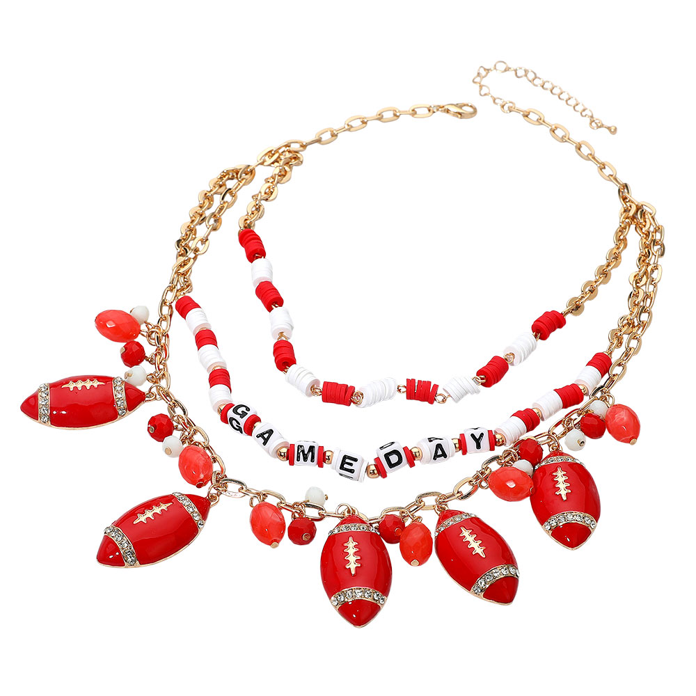 Football Charm Embellished GAMEDAY Heishi Beaded Layered Necklace