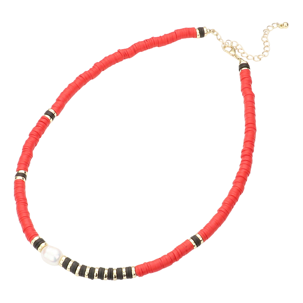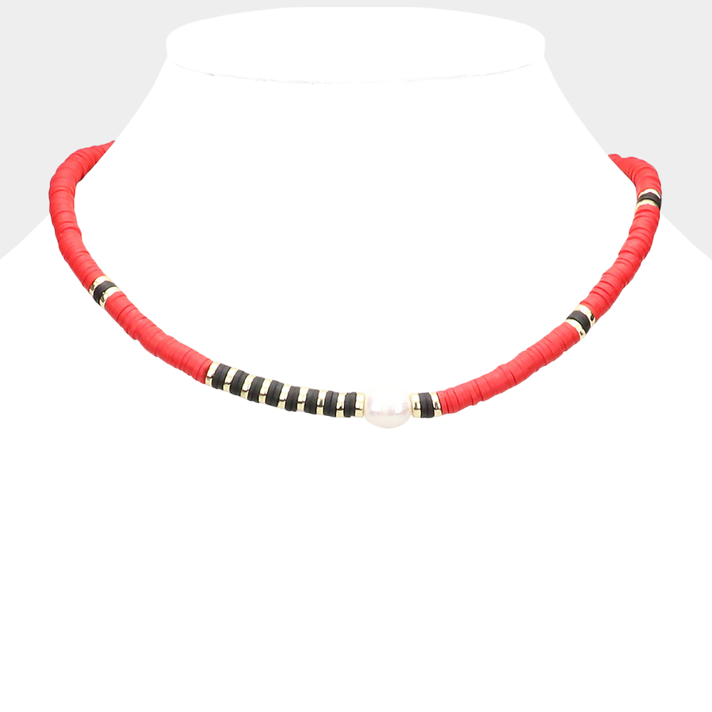 Freshwater Pearl Accented Heishi Beaded Necklace