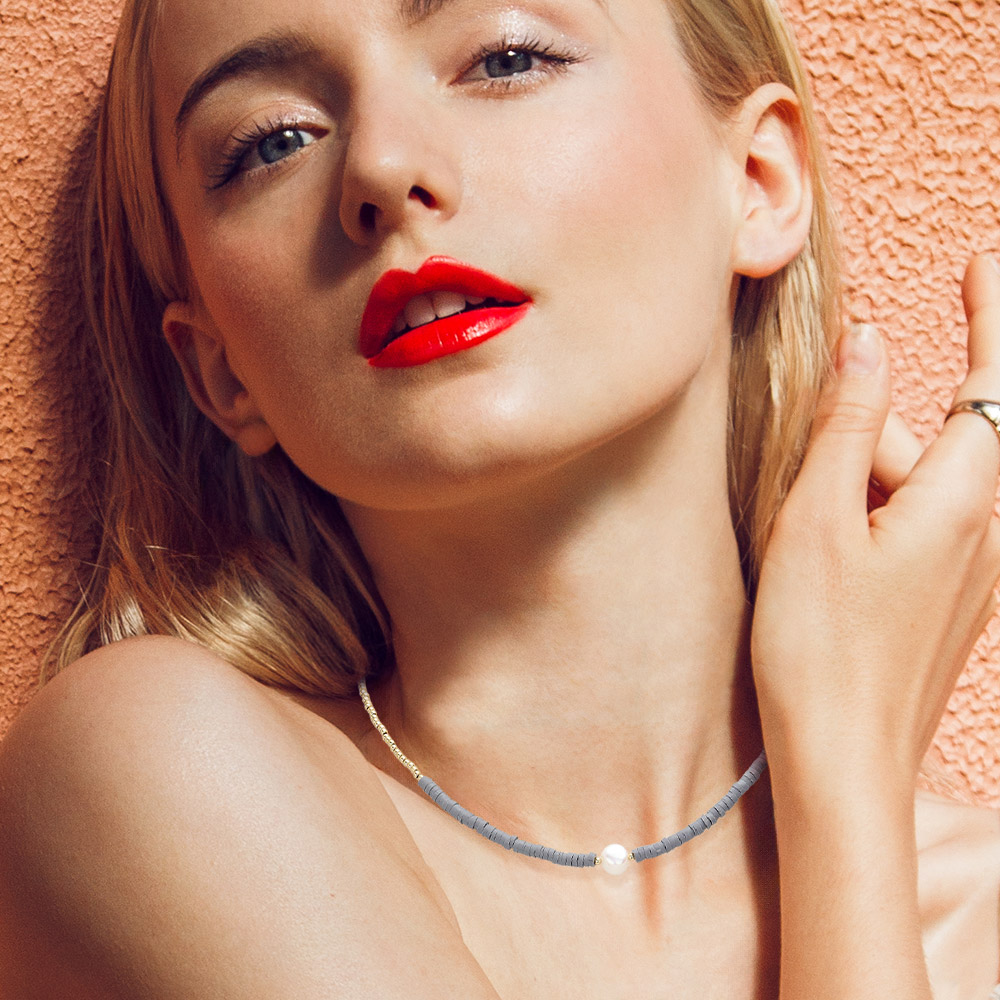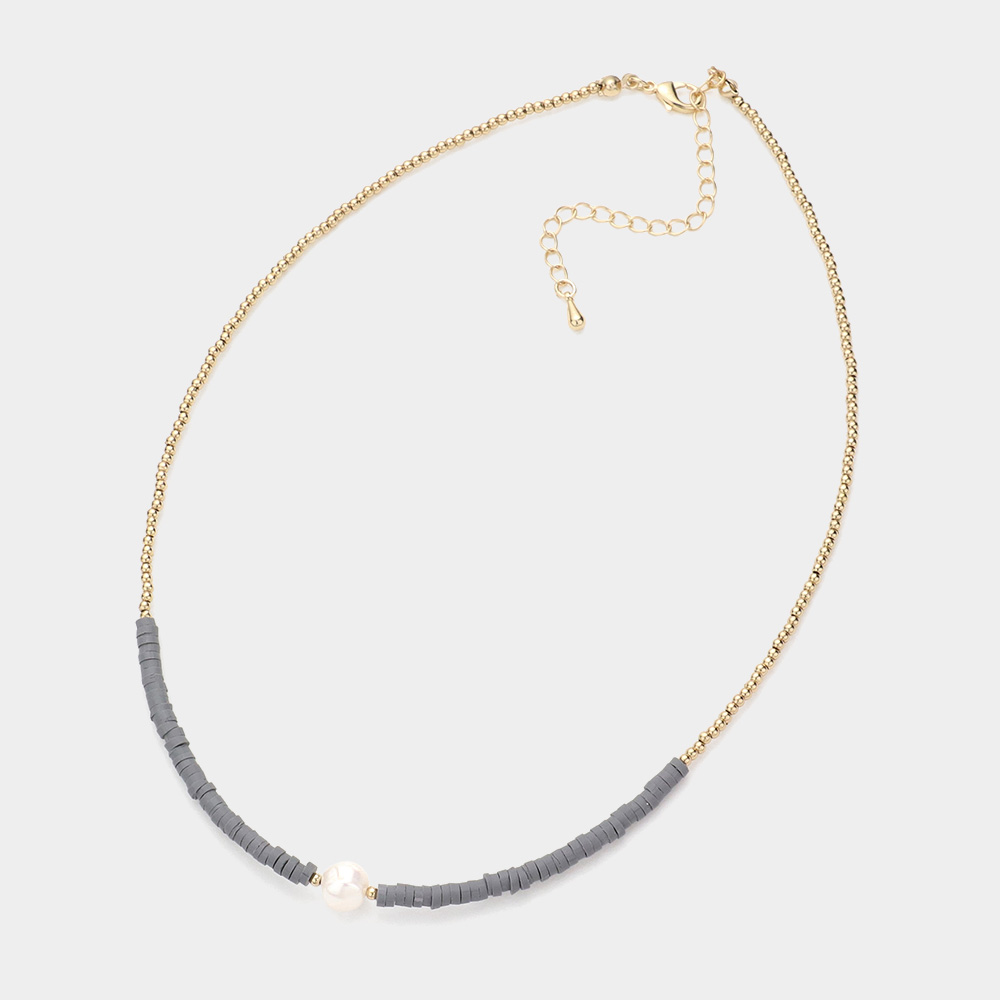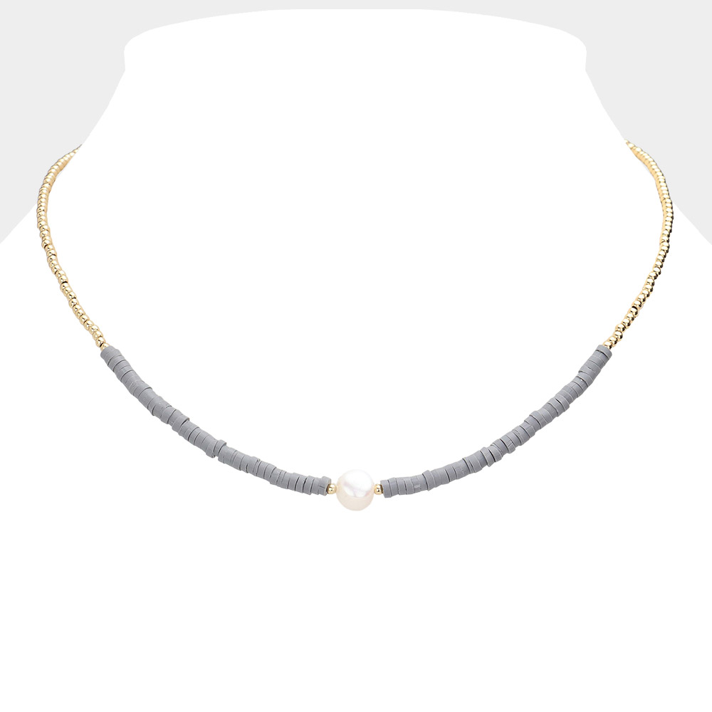 Freshwater Pearl Accented Metal Ball Heishi Beaded Necklace