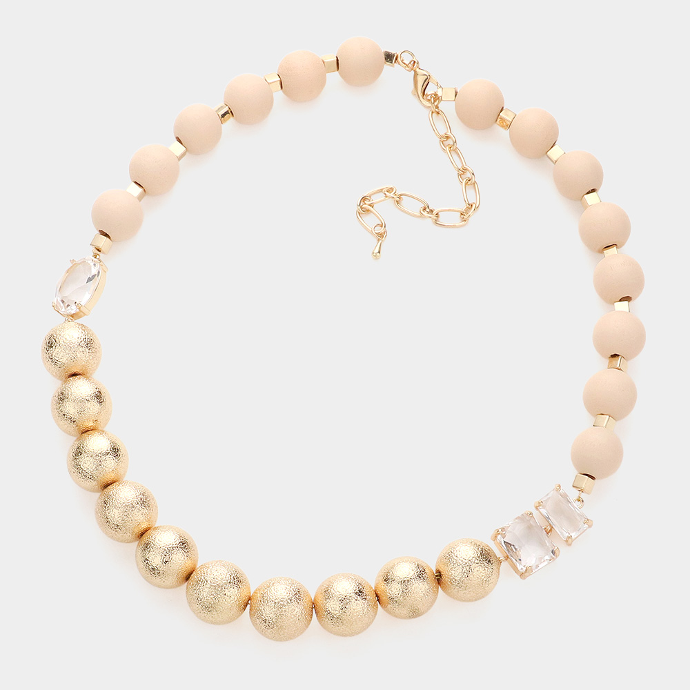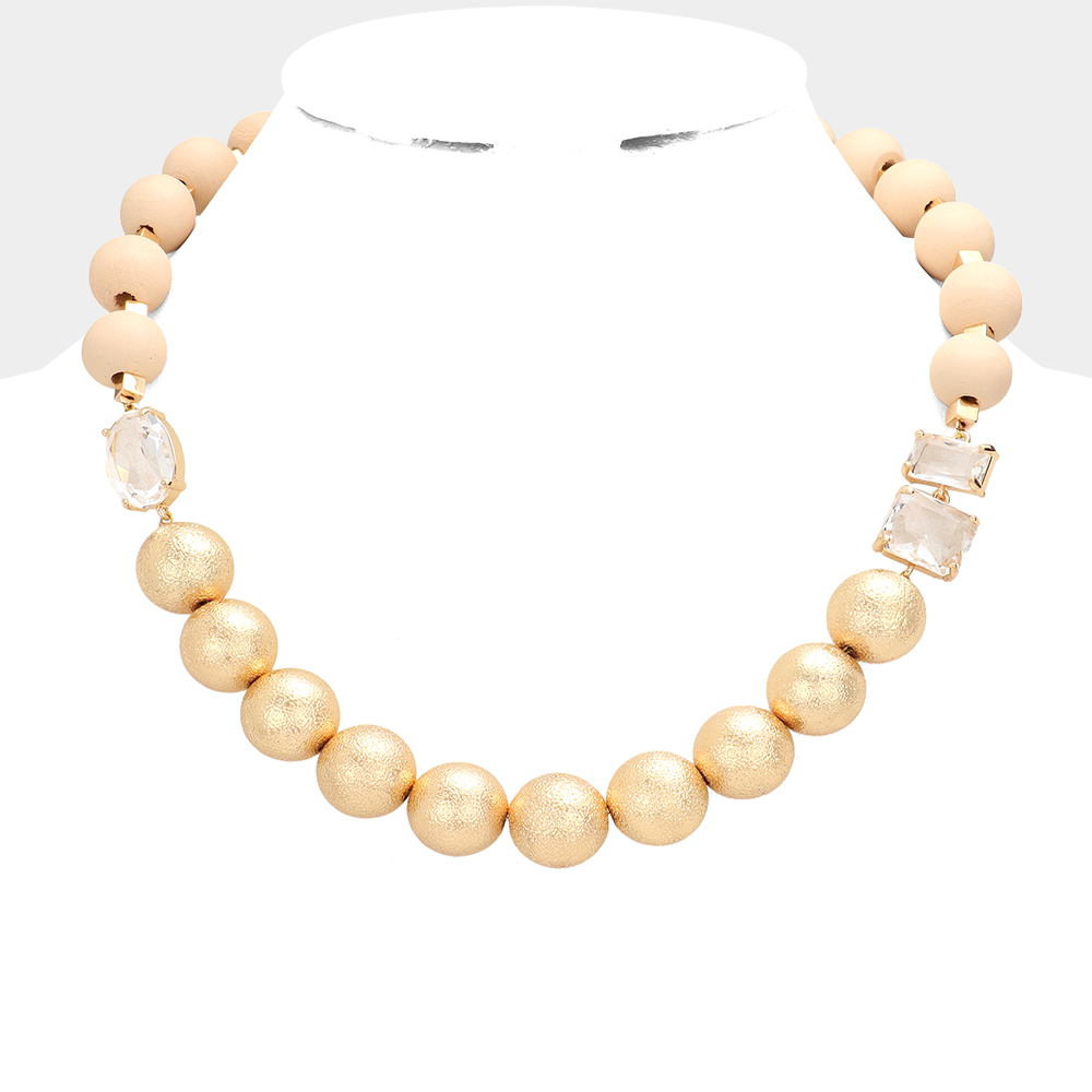 Frosted Metal Wood Ball Lucite Stone Link Necklace