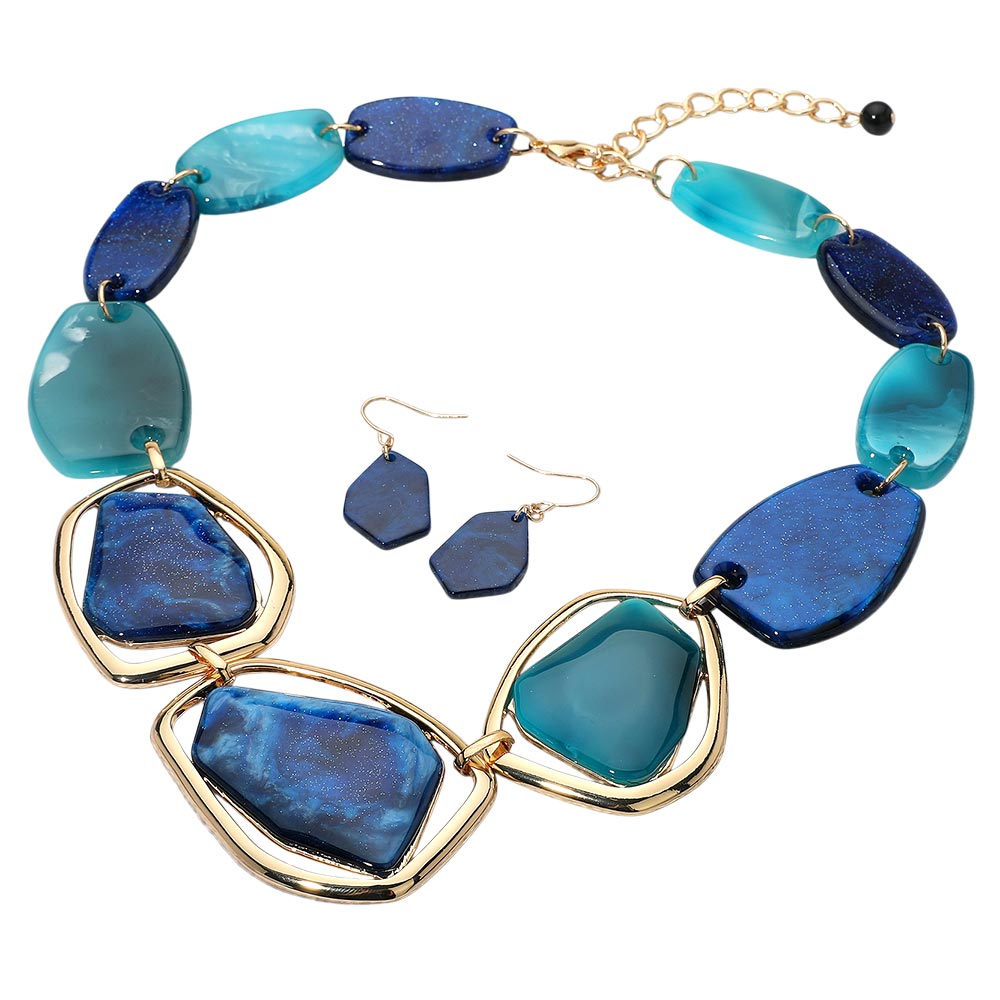 Details • Necklace Size : 21" + 3" L • Decor Size : 1.7" L • Make a bold impression with this chunky geometric necklace and matching earrings set. Featuring sculpted abstract shapes and a dramatic design, this set is ideal for standout fashion moments and unique personal style. • Lead and Nickel Compliant