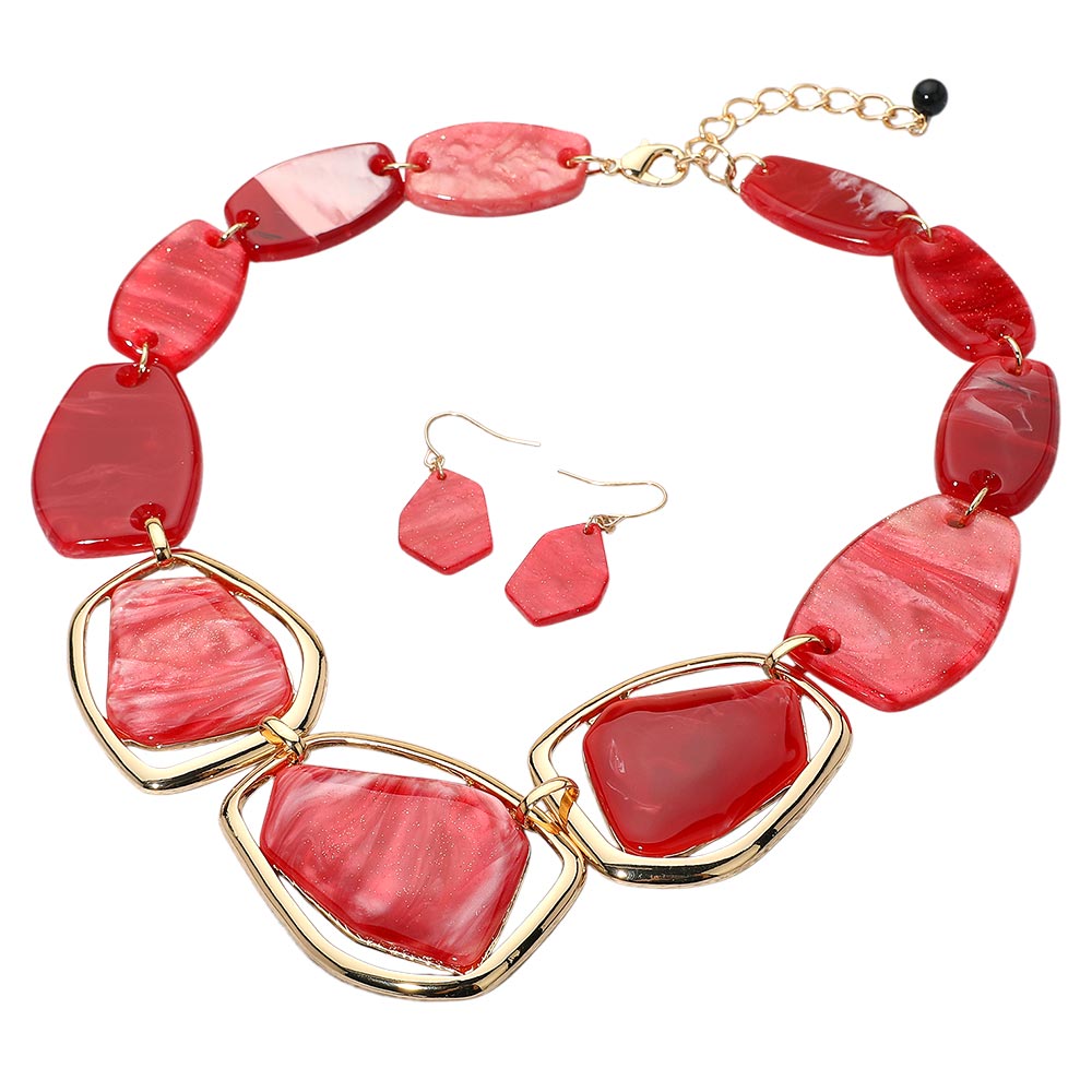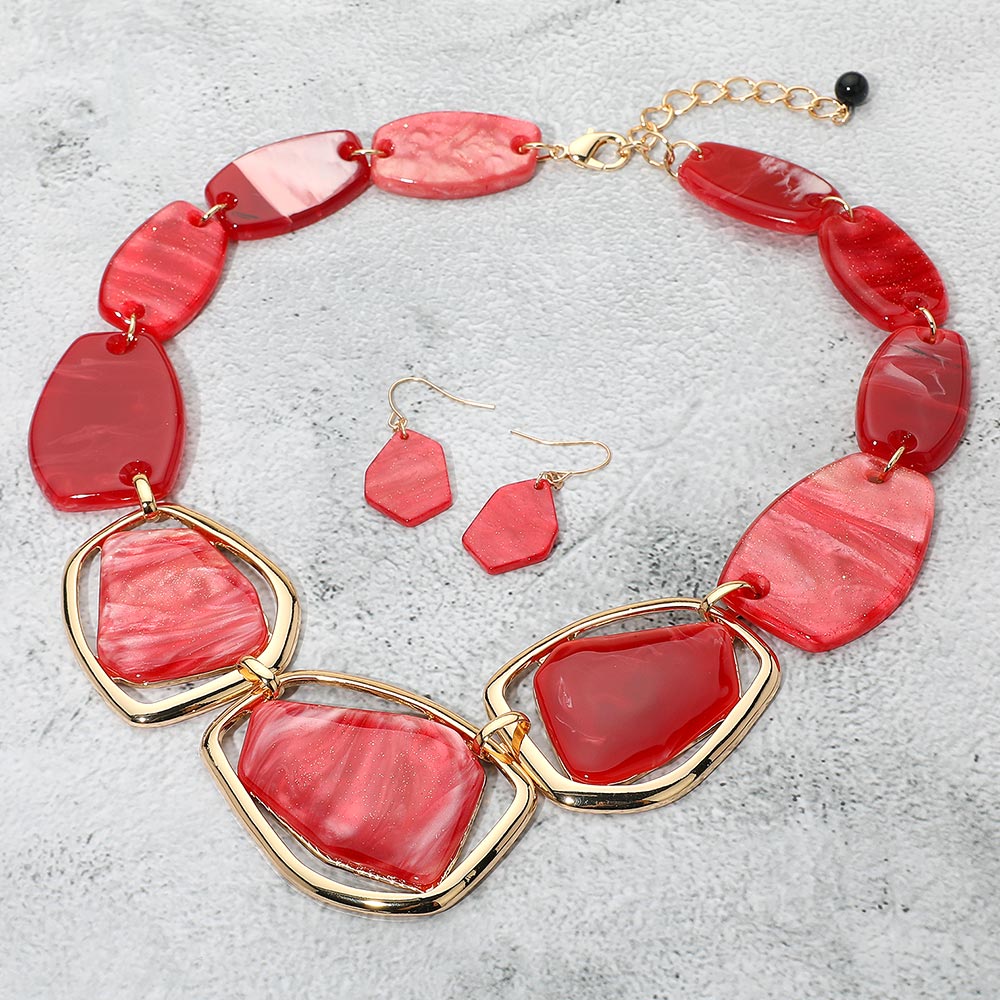 Details • Necklace Size : 21" + 3" L • Decor Size : 1.7" L • Make a bold impression with this chunky geometric necklace and matching earrings set. Featuring sculpted abstract shapes and a dramatic design, this set is ideal for standout fashion moments and unique personal style. • Lead and Nickel Compliant