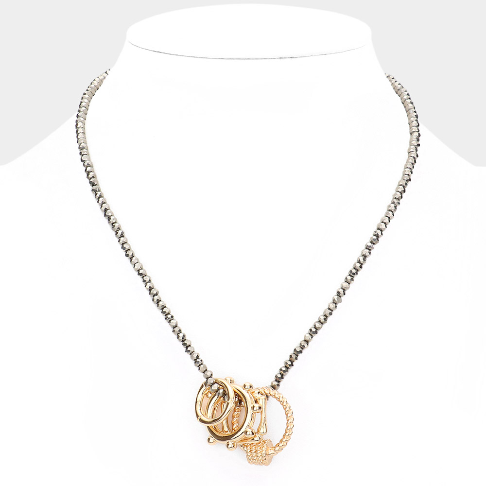 Geometric Open Metal Pendant Faceted Beaded Necklace