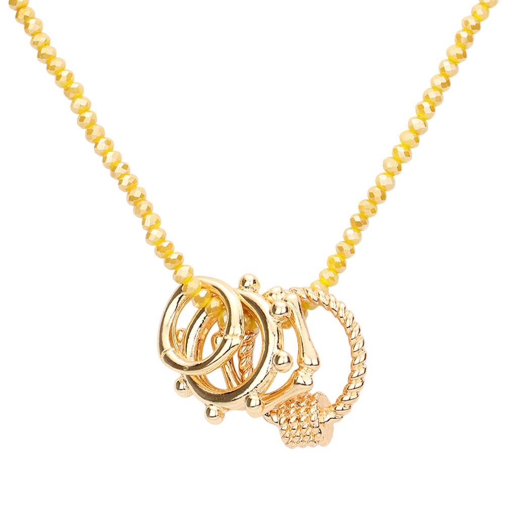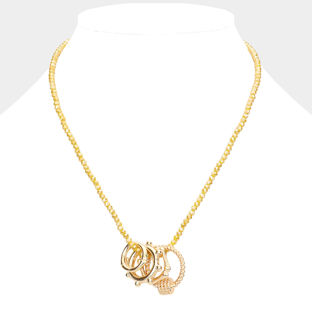 Geometric Open Metal Pendant Faceted Beaded Necklace