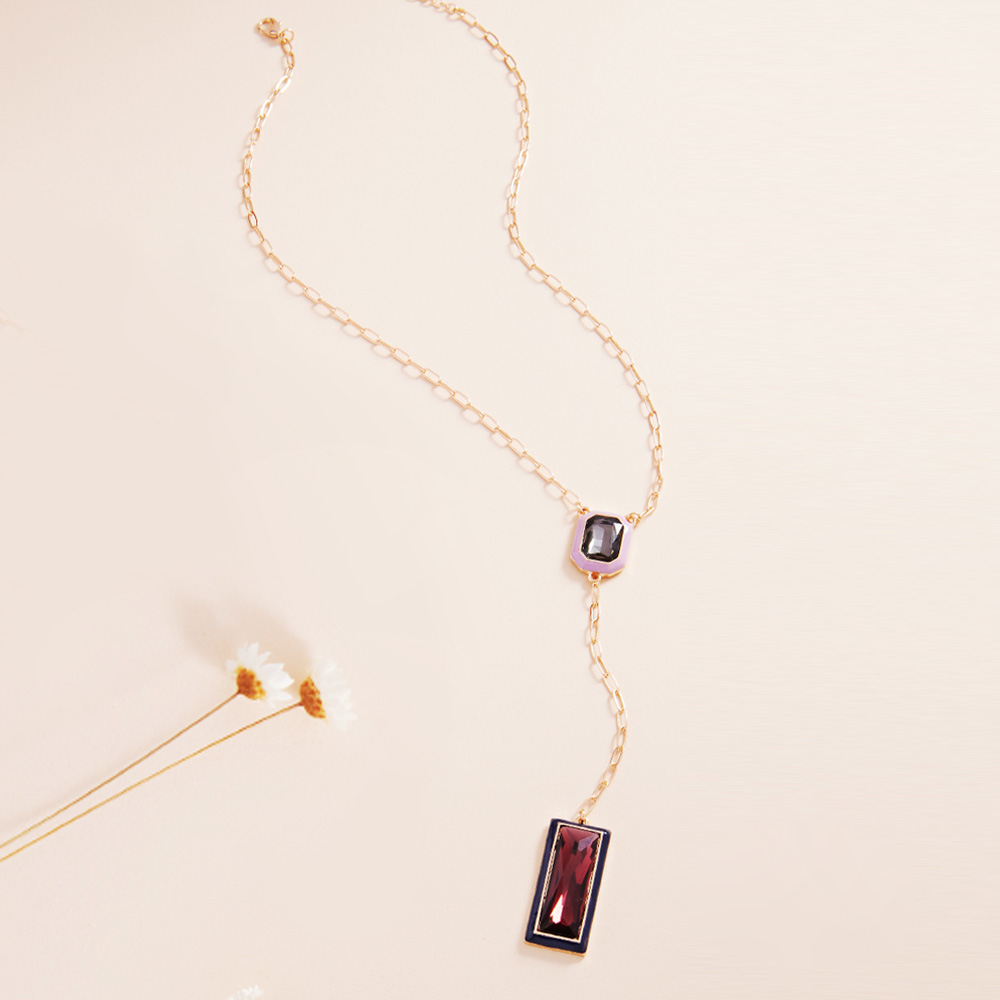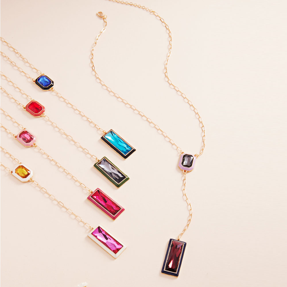 Square Rectangle Glass Stone Link Drop Dangle Earrings