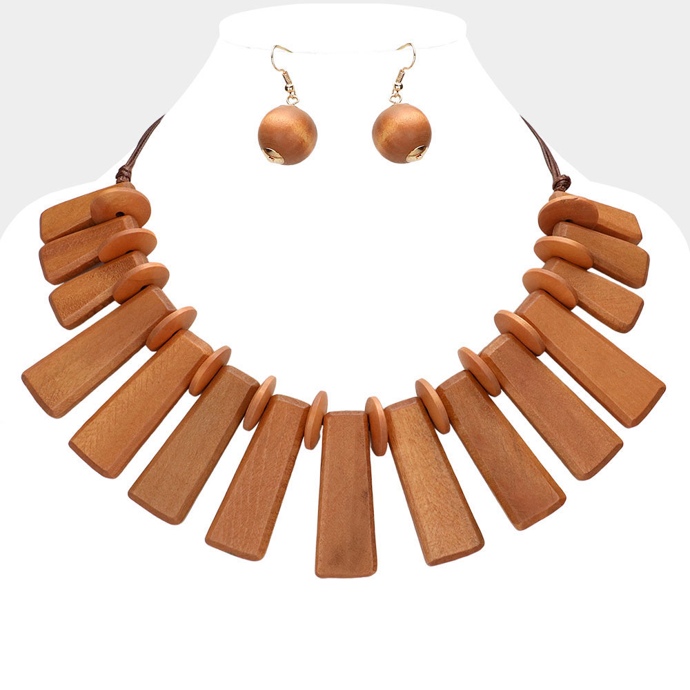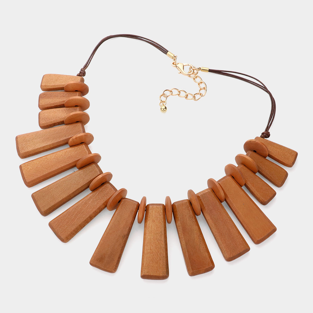 Chunky Oval Wooden Plate Beaded Stretch Bracelet