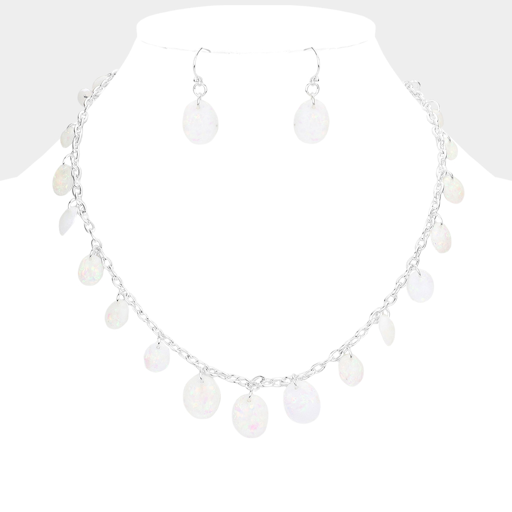 Rhinestone Pave Teardrop Collar Necklace & Clip Earring Set
