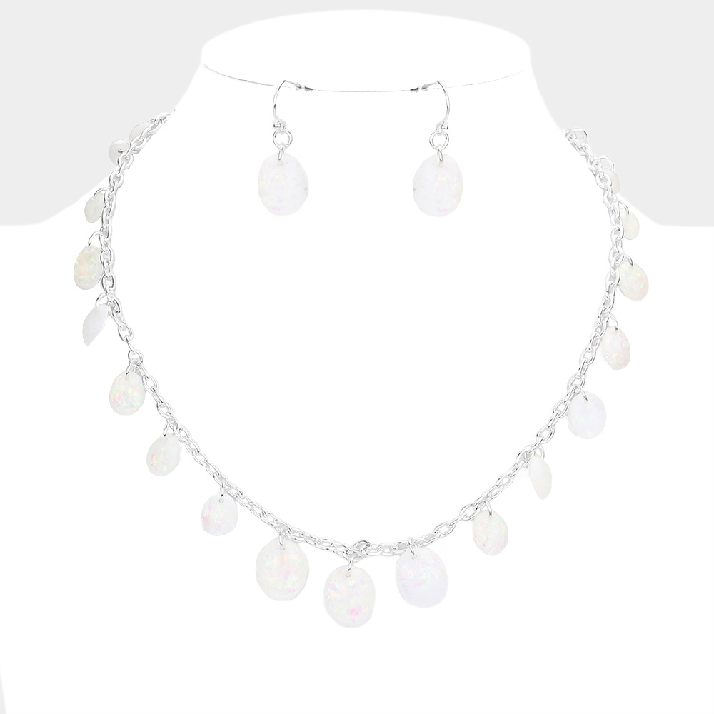 Square Rectangle Glass Stone Link Drop Dangle Earrings