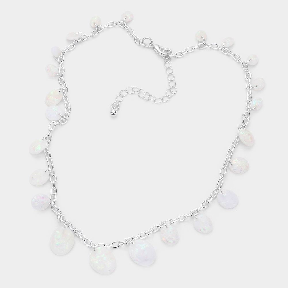 Natural Stone Hammered Metal Charm Stretch Bracelet