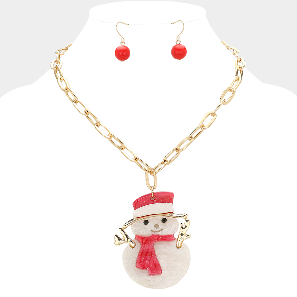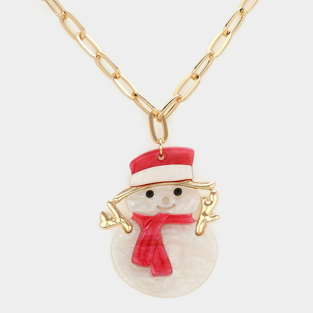Glittered Resin Snowman Pendant Necklace
