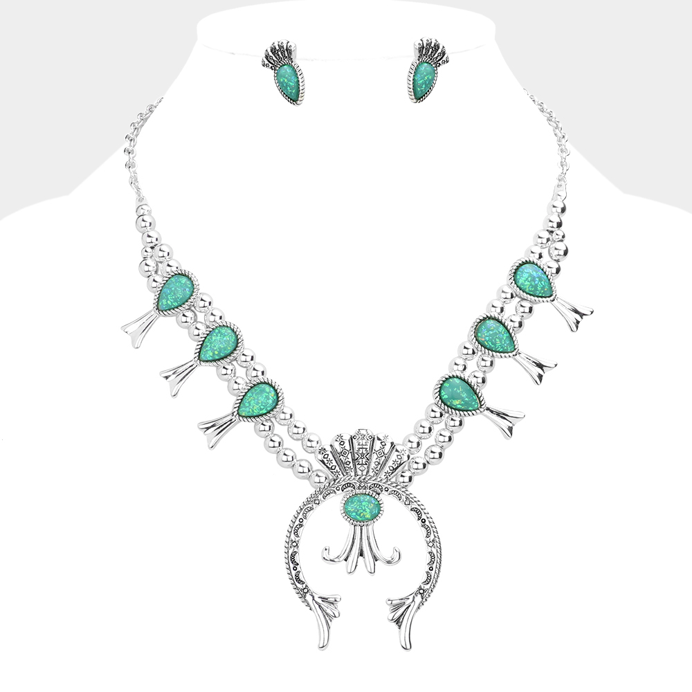 Glittered Teardrop Accented Squash Blossom Antique Metal Necklace