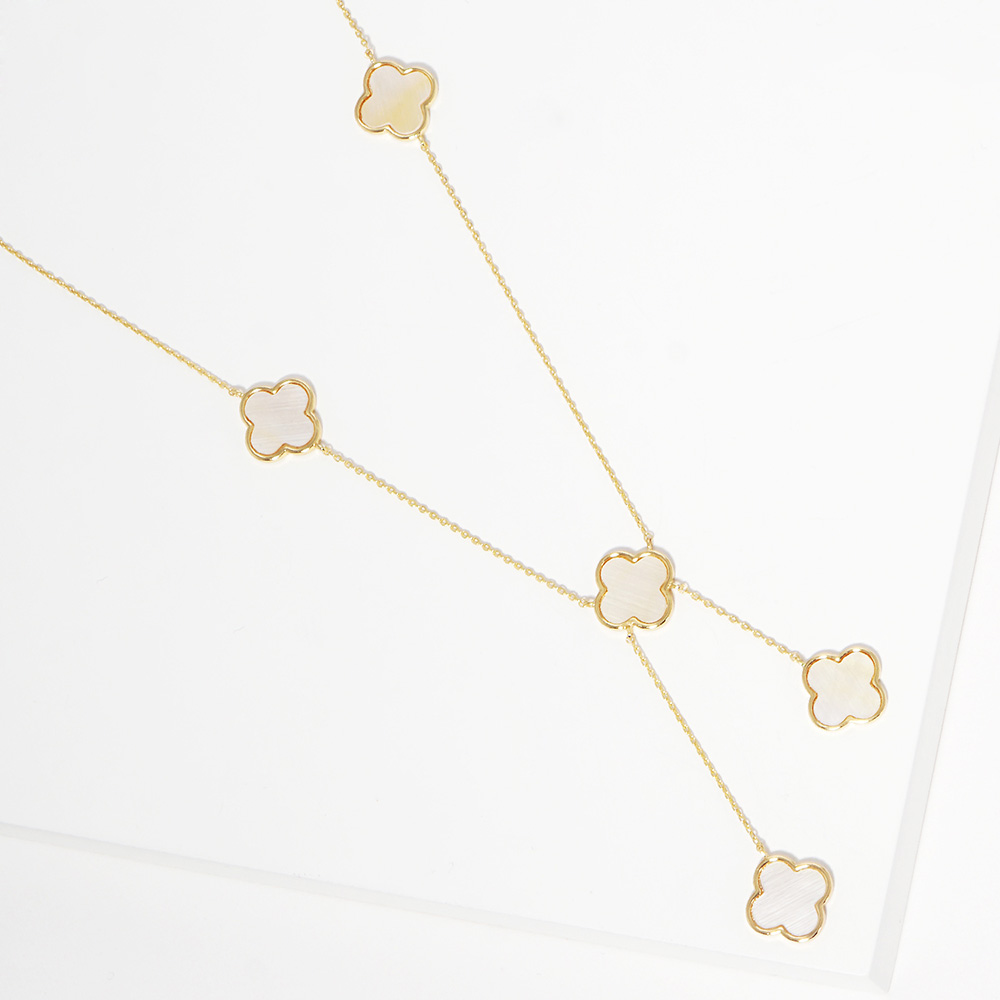 Gold Dipped Brass Metal Natural Stone Quatrefoil Station Necklace