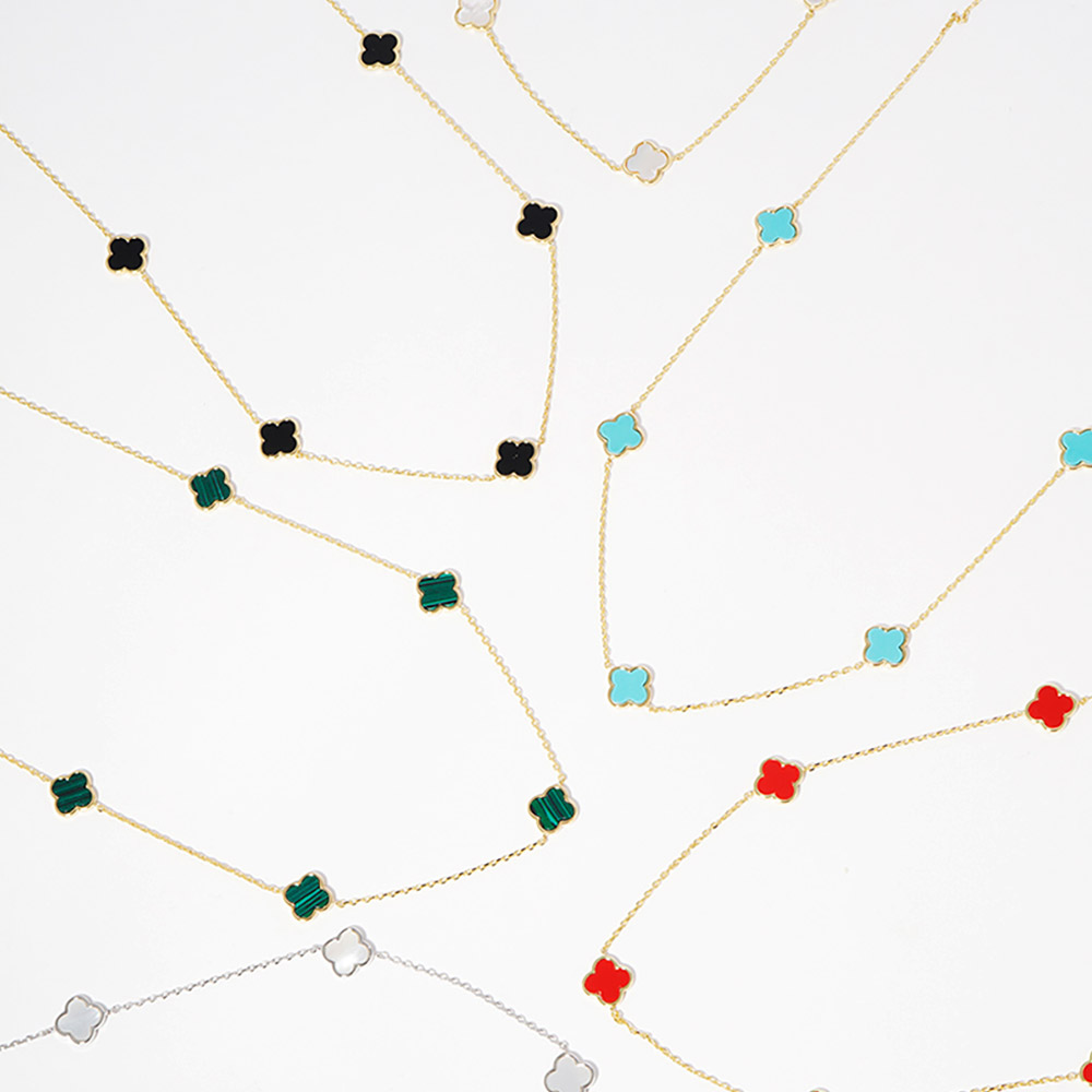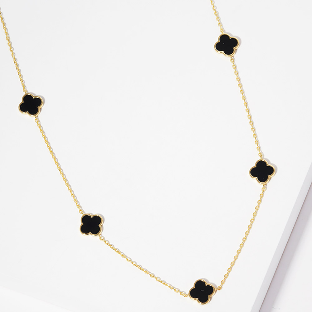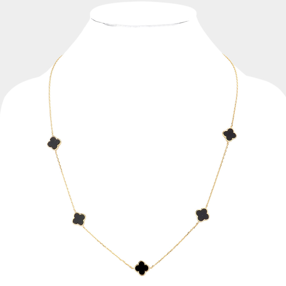 Gold Dipped Brass Metal Quatrefoil Station Necklace