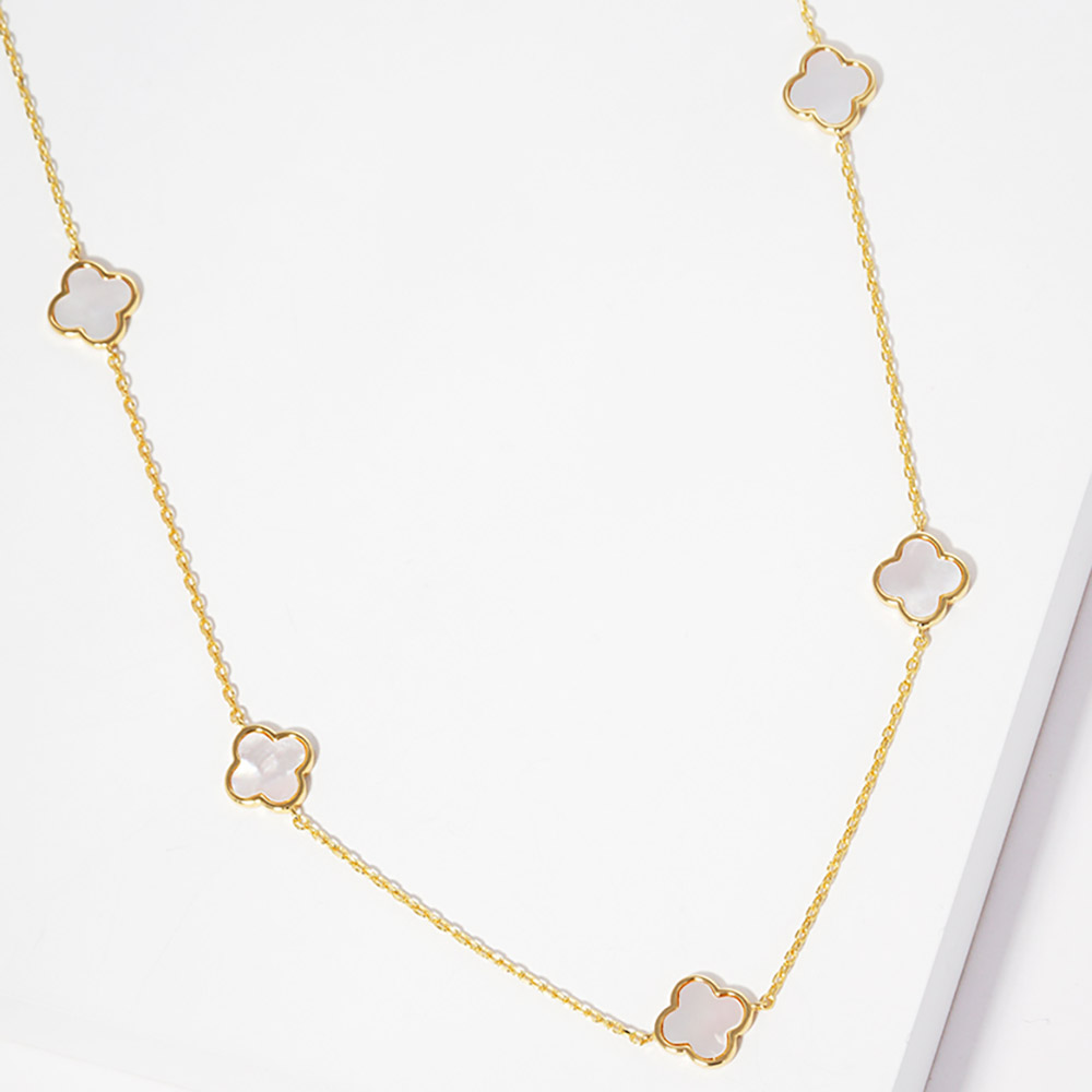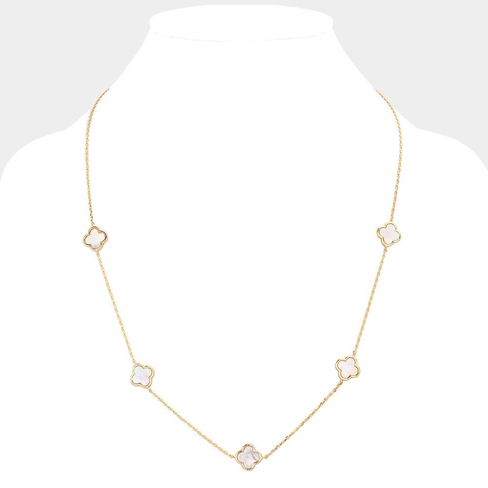 Gold Dipped Brass Metal Quatrefoil Station Necklace