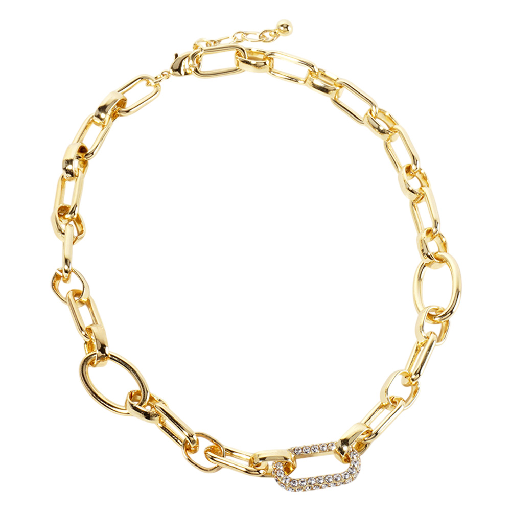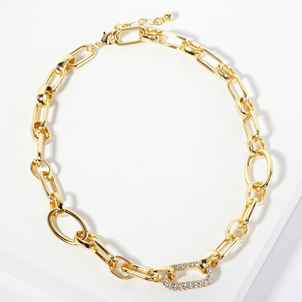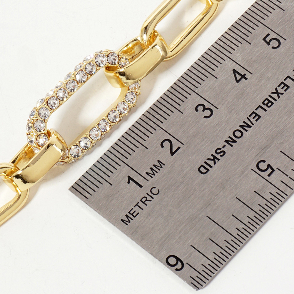 Gold Dipped CZ Stone Paved Oval Link Pointed Chain Necklace